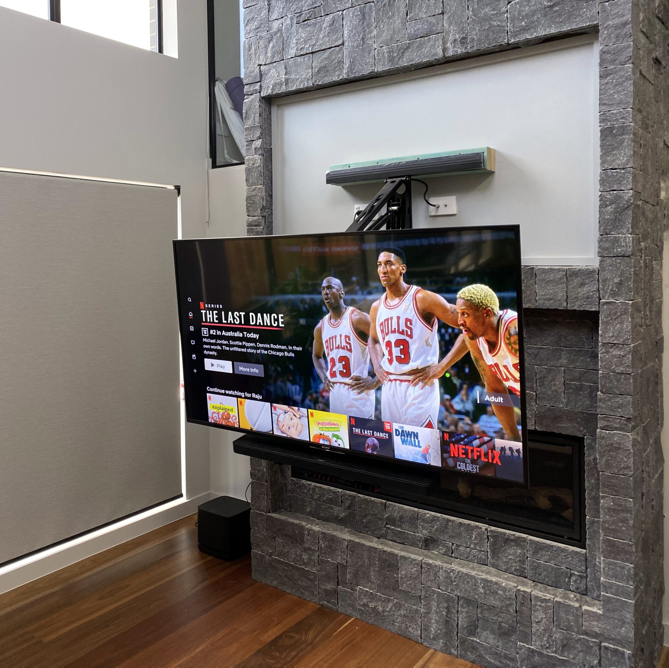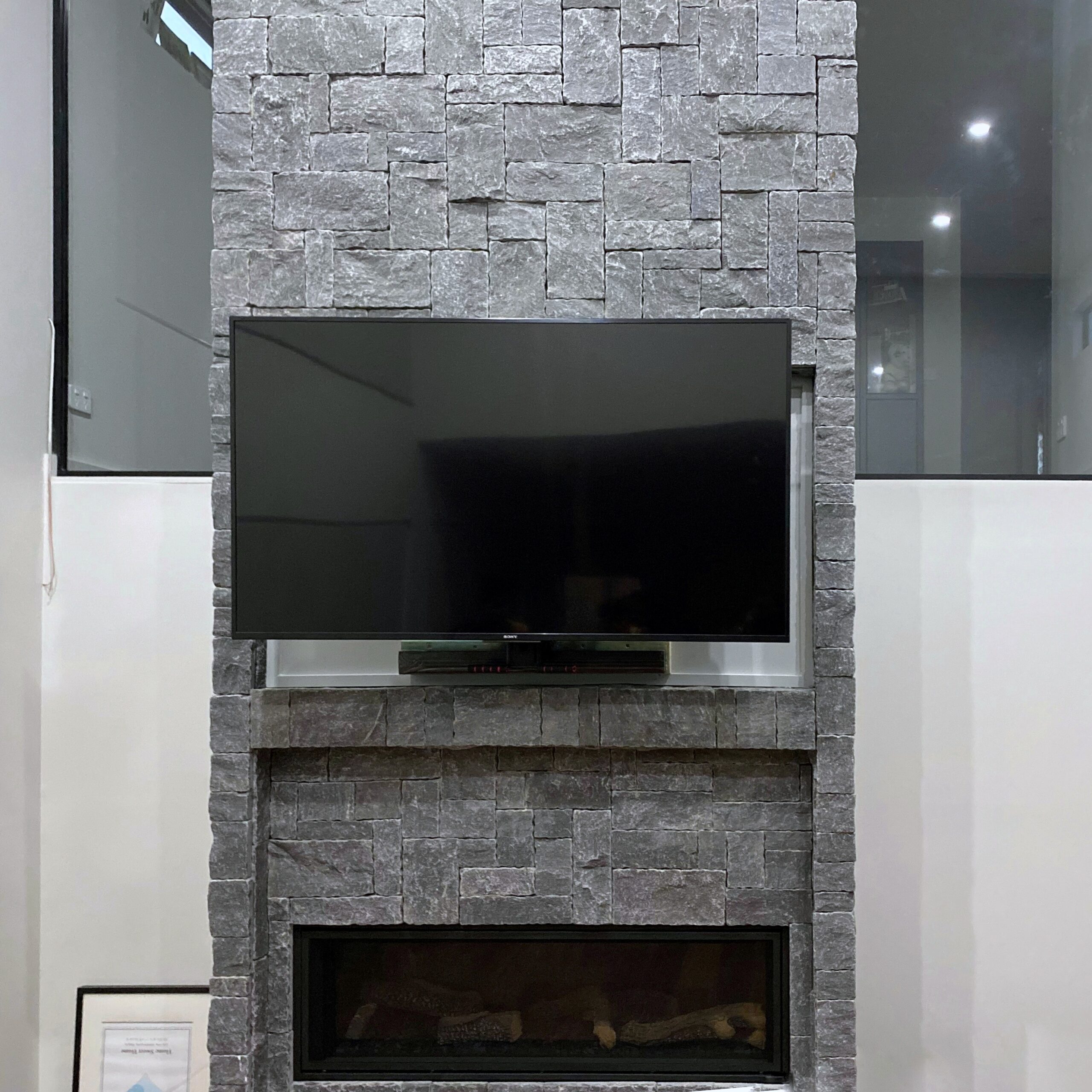 Fireplace mantel TV installation.